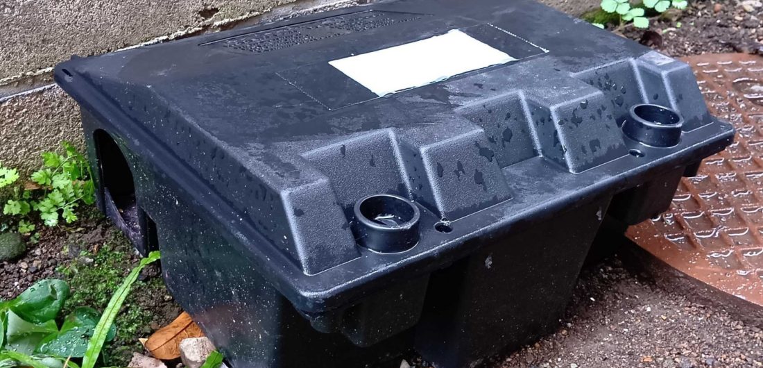 さて、こんなケースもあります。ほぼ1日扉の開いている物流倉庫などで起こるネズミ被害、ビルやマンションのゴミ置き場や、外周部にネズミが生息している…、学校や保育園の給食室の外周付近にネズミが生息しているかも…?などなど、こんな時に一つの対処法として建物外周部に食毒剤を入れたベイトボックス設置という駆除・防除方法が御座います。もちろん、閉塞作業などのように即効性は少ないかもしれませんが鍵付きかつ入口が小さい(ネズミ防除用)ため、建物外周部などにも比較的安全に使用出来ます。