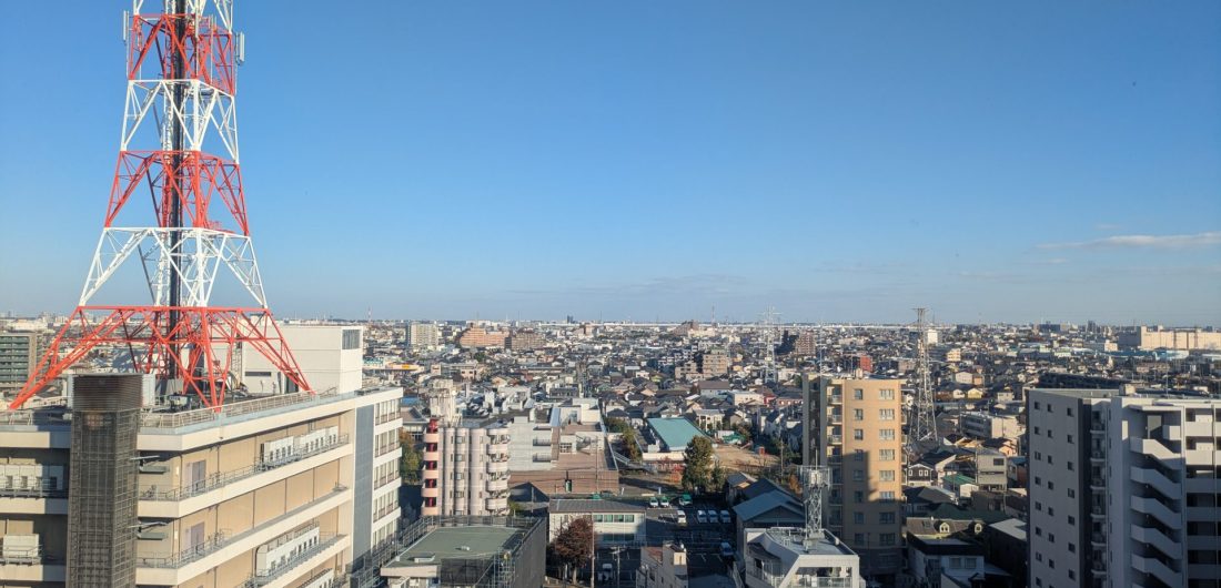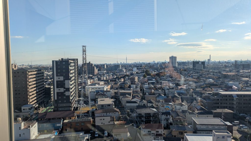 草加市のホームページにもあるように、遠くにスカイツリーも…うっすらと。