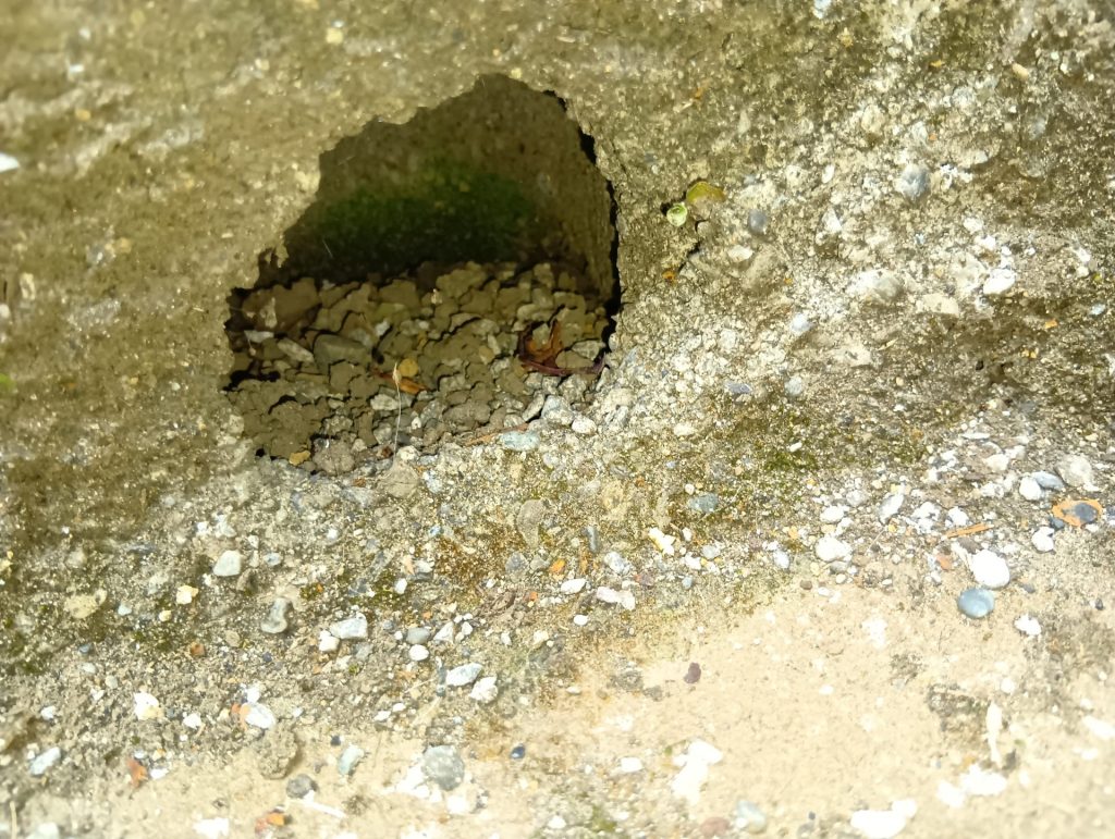 ■ 実際の現場写真|コンクリート階段に開いた鼠穴